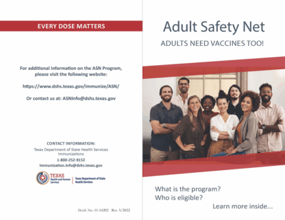 “Adults Need Vaccines Too!” Brochure – Adult Safety Net (ASN) Program.