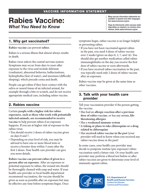 “Rabies Vaccine What You Need to Know” Vaccine Information Statement (VIS) (English). Rev: 06/2022
